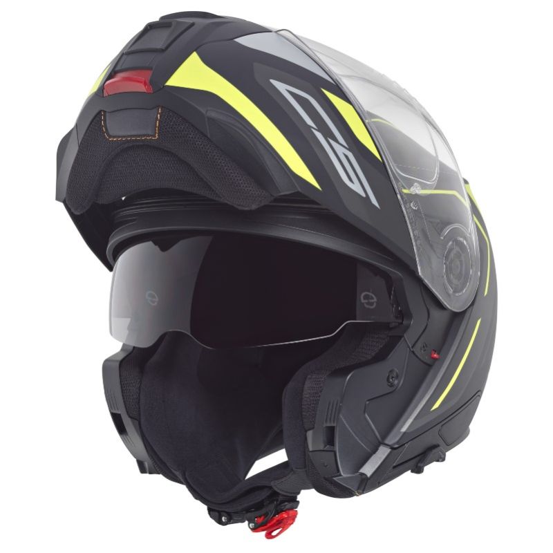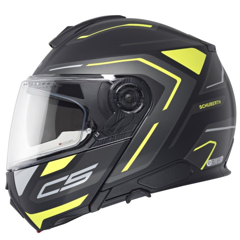 Schuberth C5 er P/J ECE-R 22.06 godkendt og må derfor benyttes med kæbedelen åben på offentlig vej.
