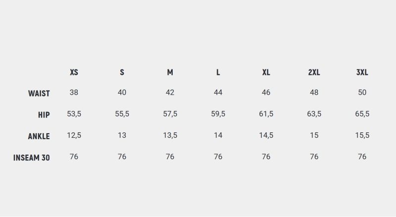 Jogger er lavet med elastik og snortræk i livet, Mellemhøj talje. Lige ved hoften og bliver smallere mod anklerne.