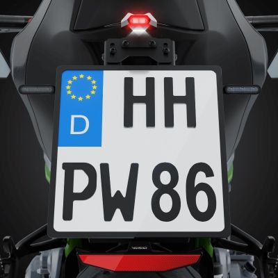 Split-RS LED baglygten er med integreret nummerpladelys og passer på bla. Highsider Akron-RS Pro og LSL Mantis-RS Pro nummerpladeholder.