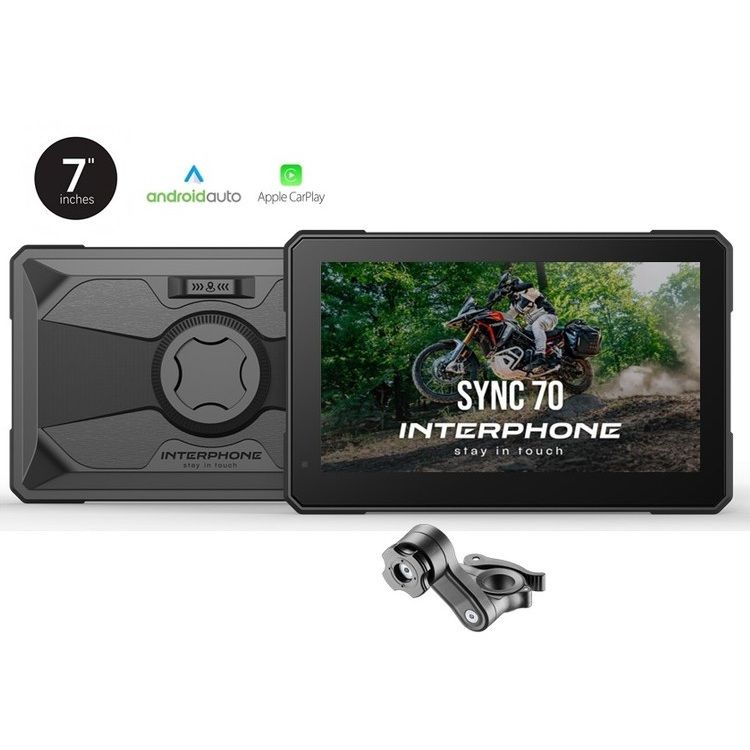 Med Sync70 fra Interphone kan du putte din mobil i lommen og styre alt fra dit nye "MC Smart Display" her kan du få vist din rute, bladre gennem musik og holde dig orienteret på vejen.