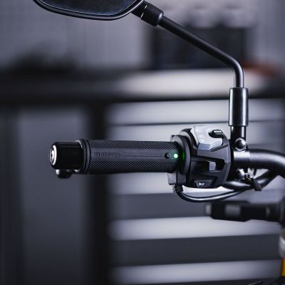 Høj kvalitet og hurtig varme til dine fingre med ét klik, som på denne "Pro" udgave af Oxford Hotgrips betjenes via en knap integreret på håndtaget.