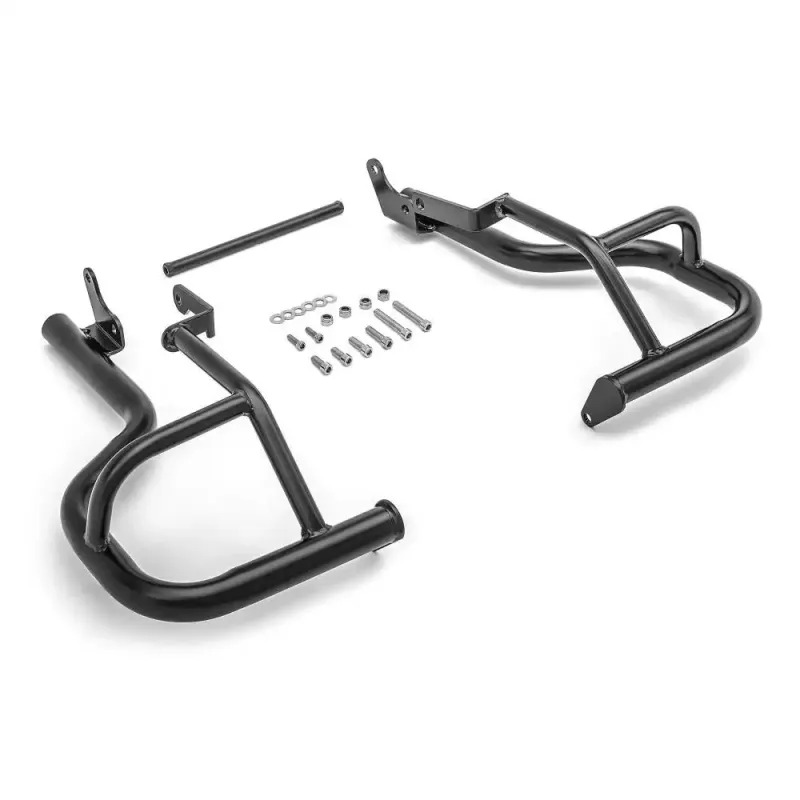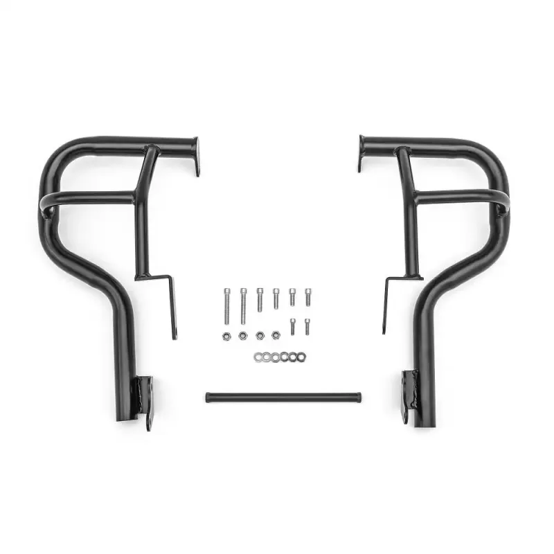 Styrtbøjlen er udført i kraftig 38mm forkromet stålrør og du kan tilføje ekstra udstyr i form af eks. ekstra lygter eller ekstra fodhviler sæt på bøjlen.