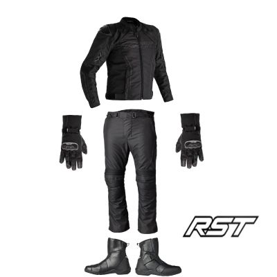 Vi har sammensat vores bud på et komplet sæt MC tøj af god kvalitet fra RST til små penge, som du ikke går galt i byen af.