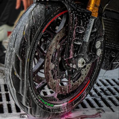 Rensen virker effektivt (indenfor 5 Minutter) of fjerner nemt bremsestøv, kædefedt og skidt og snavs fra vejen.